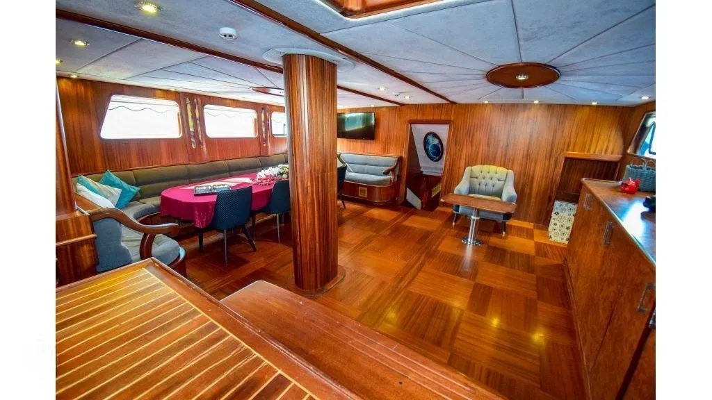 With seven thoughtfully designed cabins, Ugur provides an inviting sanctuary for up to 14 guests. The master suite offers an elegant escape, while the VIP and double cabins ensure everyone has a personal retreat. Wake up to the soft light filtering through your window, a gentle reminder that another day of exploration and relaxation awaits. Each cabin is a harmonious blend of comfort and style, creating a serene atmosphere where you can unwind after a day of adventure.