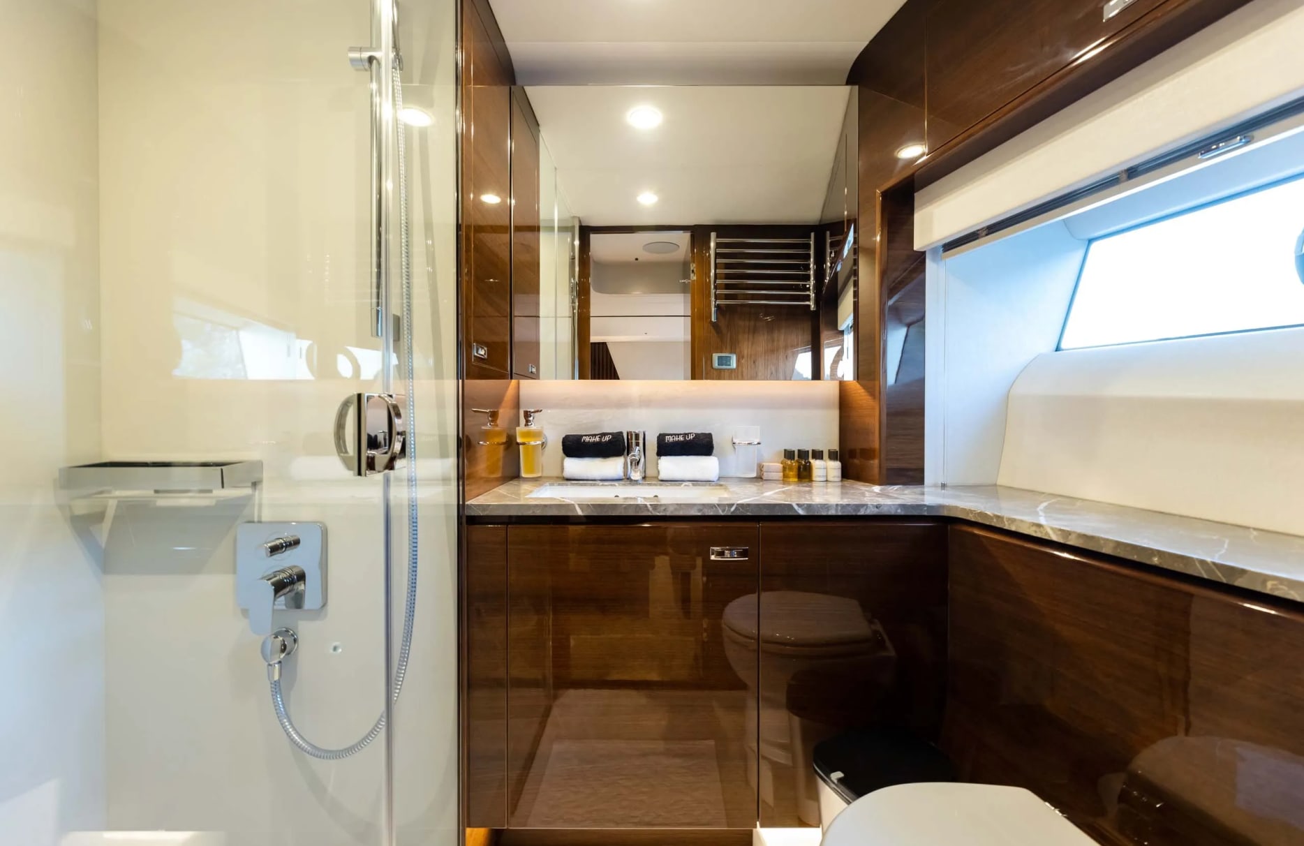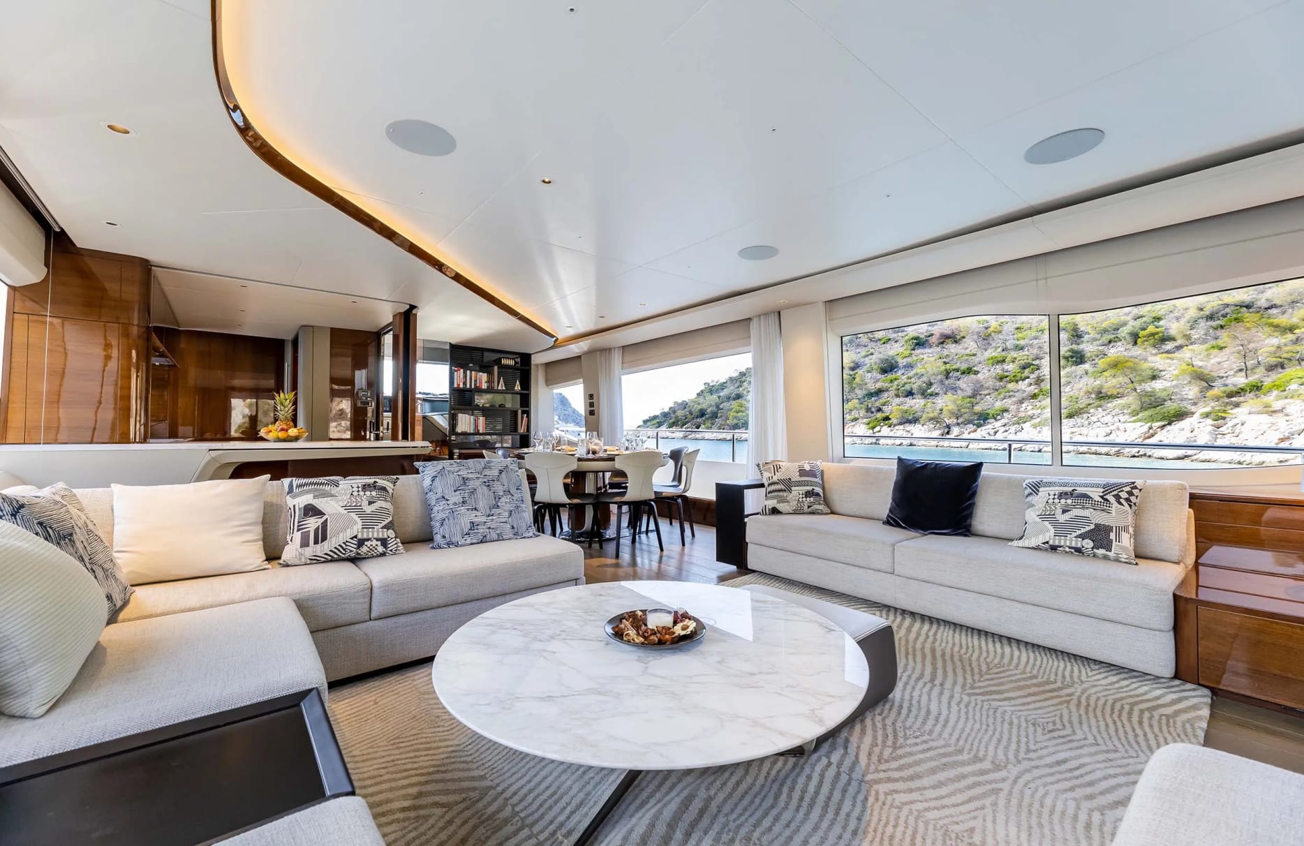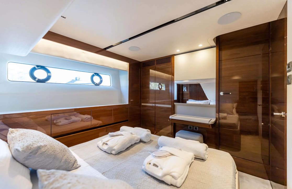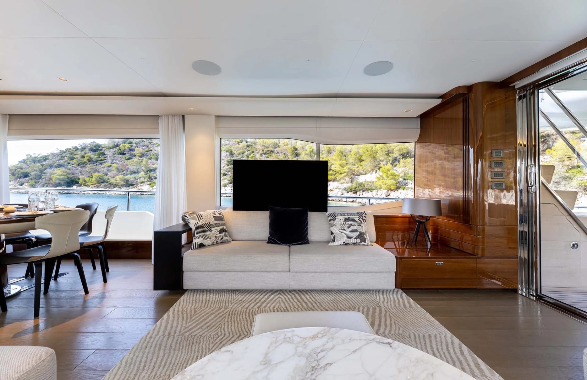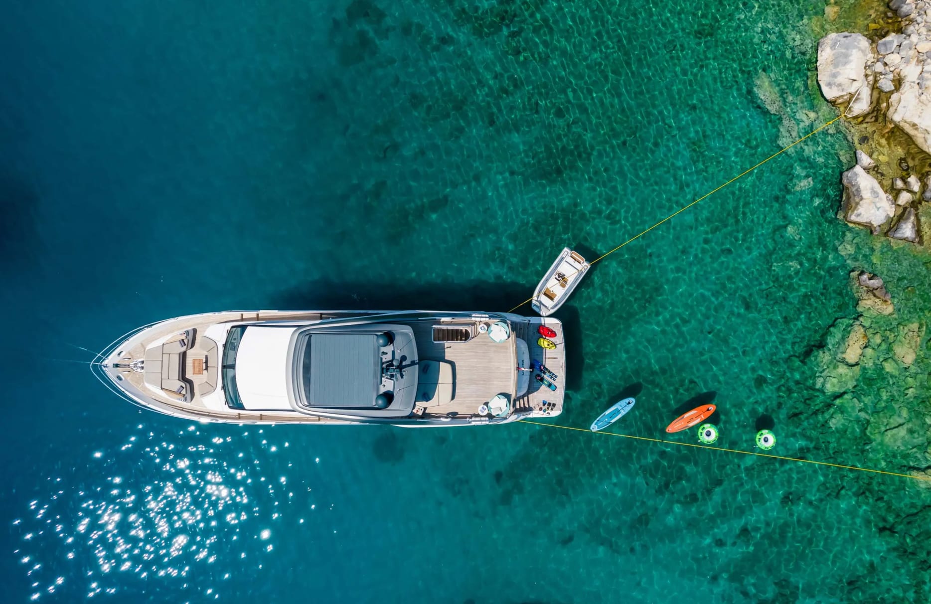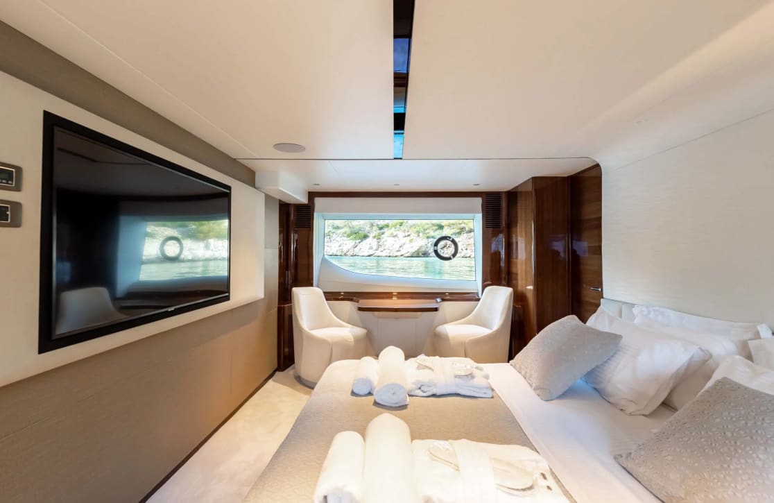 Crafted by the esteemed Princess shipyard, the motor yacht Vista invites you to embark on a journey where elegance meets exhilarating adventure. With her sleek 26-meter silhouette cutting gracefully through the waters, she is not merely a vessel, but a canvas upon which unforgettable memories are painted. As you cruise at a serene pace of 21 knots or feel the thrill of reaching up to 33 knots, Vista promises both tranquility and excitement. Days aboard unfold with leisurely mornings on the sun-drenched deck, afternoons exploring hidden Mediterranean gems, and evenings transformed by mesmerizing underwater lights that dance beneath the waves.
