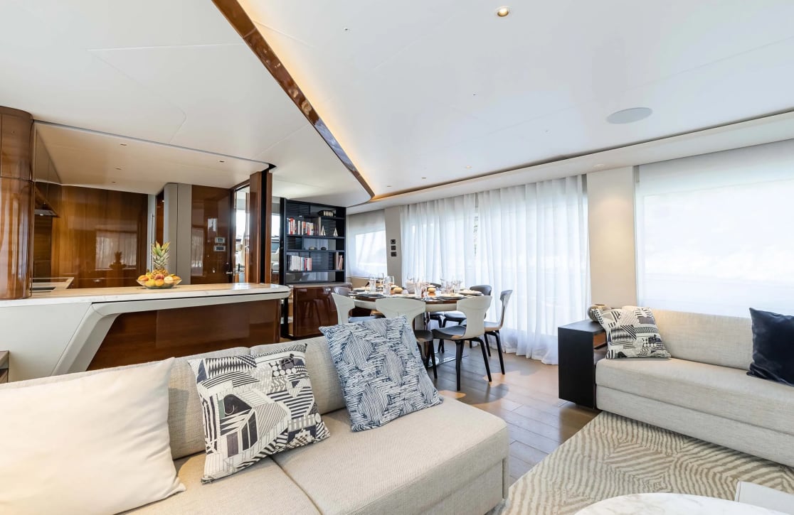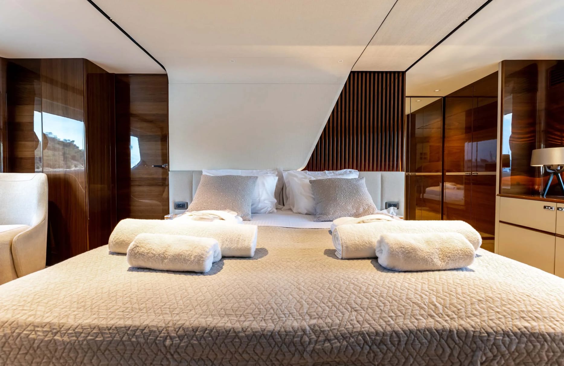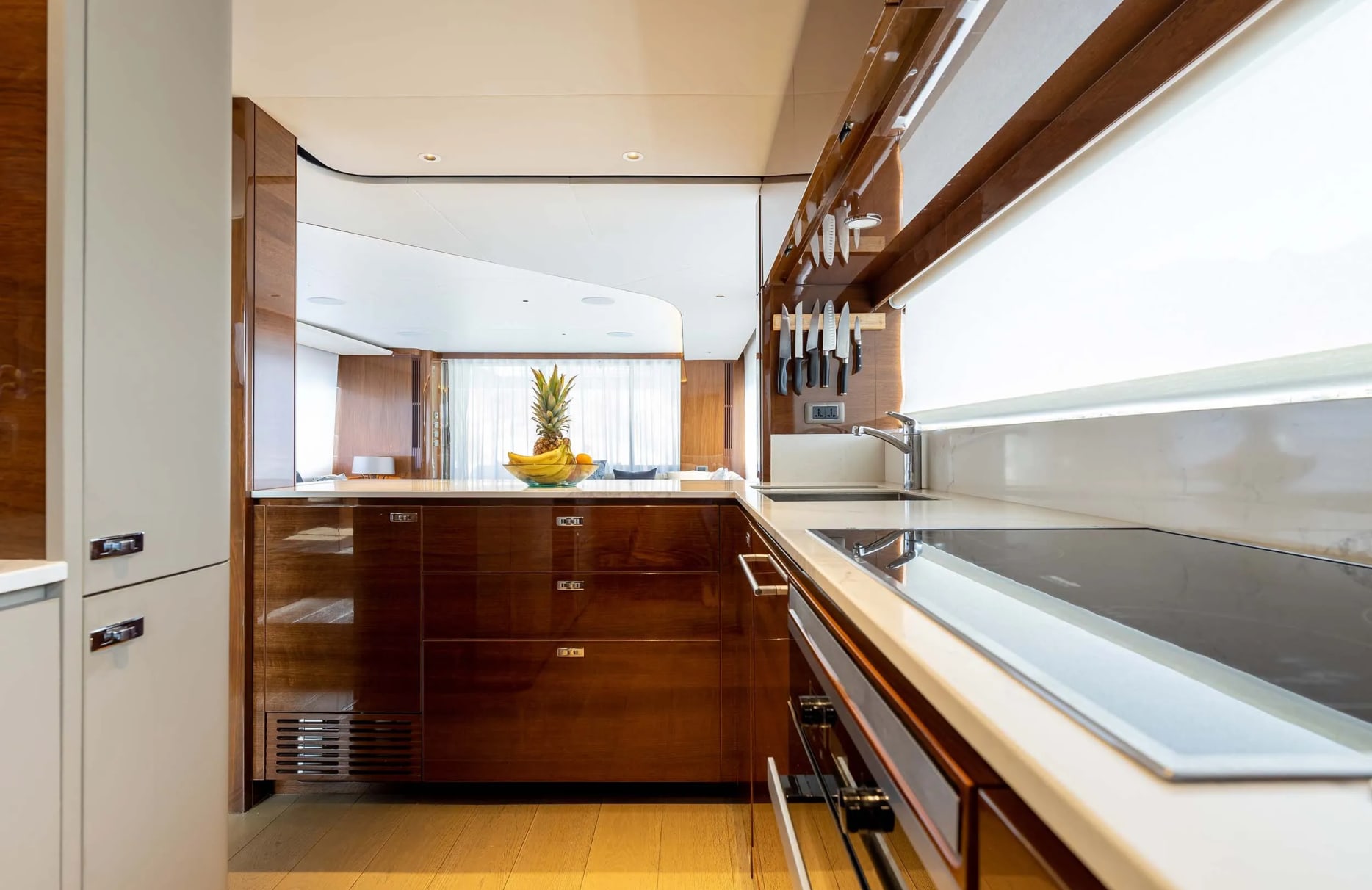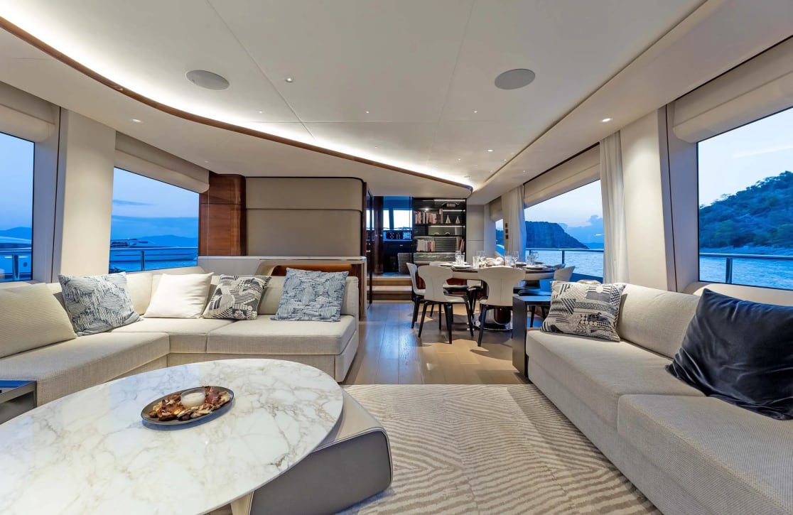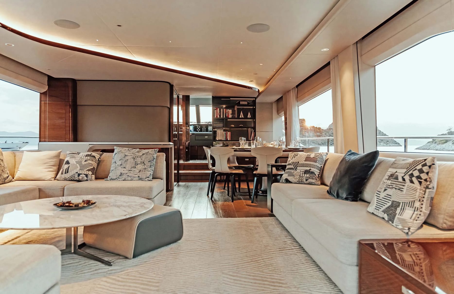 Crafted by the esteemed Princess shipyard, the motor yacht Vista invites you to embark on a journey where elegance meets exhilarating adventure. With her sleek 26-meter silhouette cutting gracefully through the waters, she is not merely a vessel, but a canvas upon which unforgettable memories are painted. As you cruise at a serene pace of 21 knots or feel the thrill of reaching up to 33 knots, Vista promises both tranquility and excitement. Days aboard unfold with leisurely mornings on the sun-drenched deck, afternoons exploring hidden Mediterranean gems, and evenings transformed by mesmerizing underwater lights that dance beneath the waves.