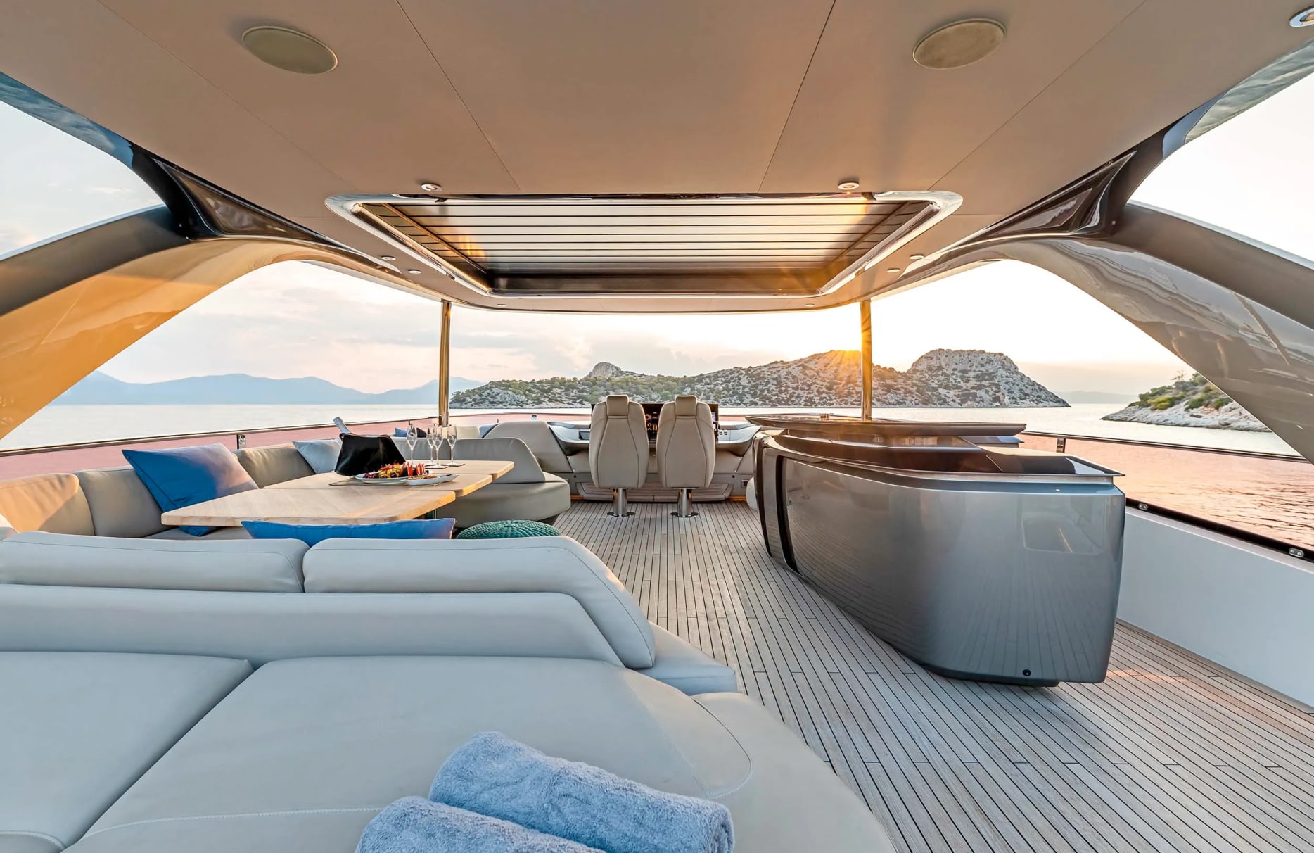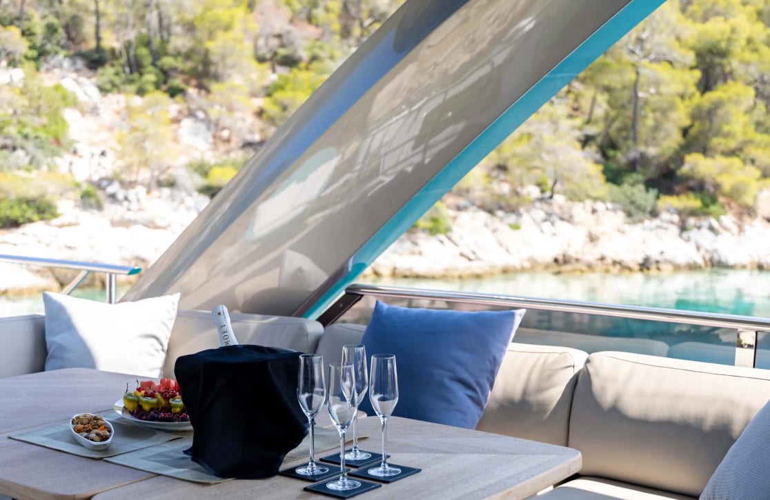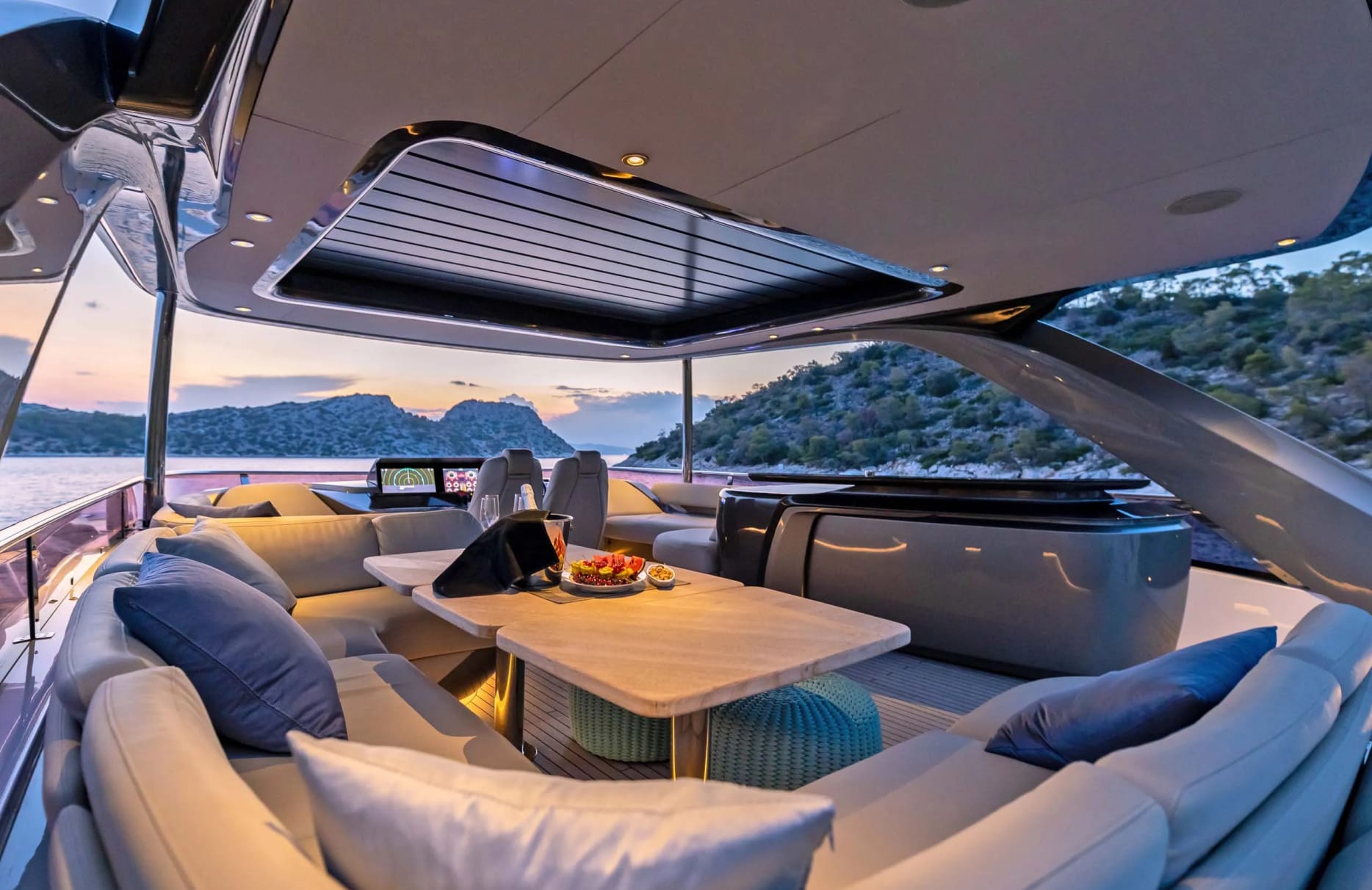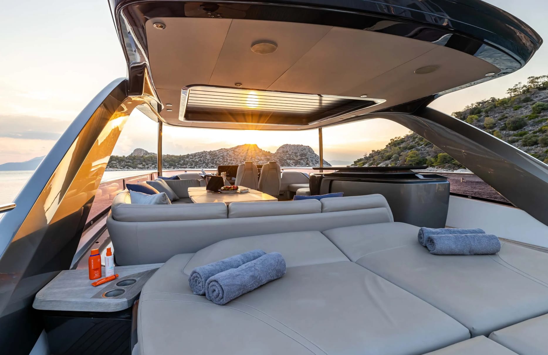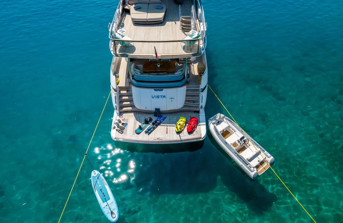 Onboard Vista, every moment is an invitation to relax and rejuvenate. The sun deck serves as a sanctuary under the sky, perfect for basking in the sun or relishing an al fresco meal. Air-conditioned interiors offer a cool respite from the midday sun, while the hydraulic swim platform provides easy access to the azure sea. As day turns to night, the underwater lights create an enchanting ambiance, setting the scene for evenings filled with storytelling and laughter.