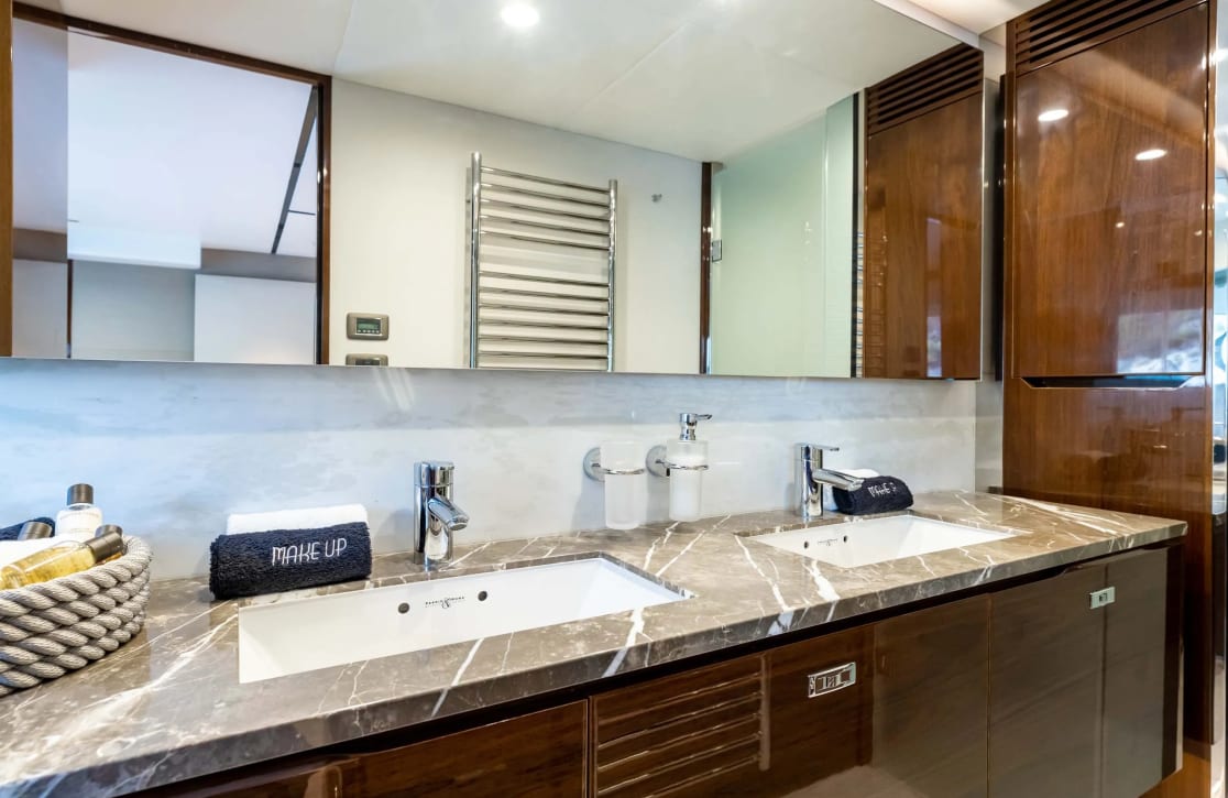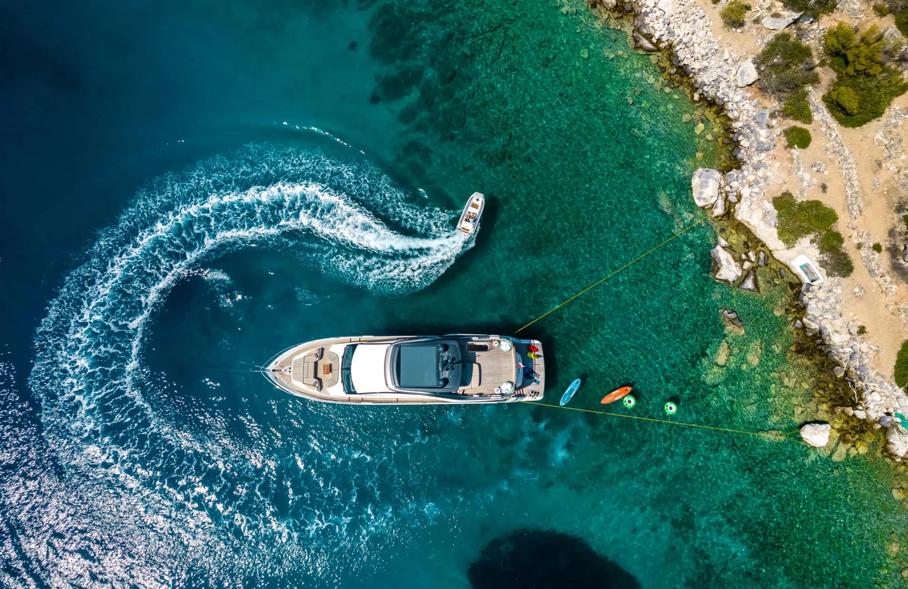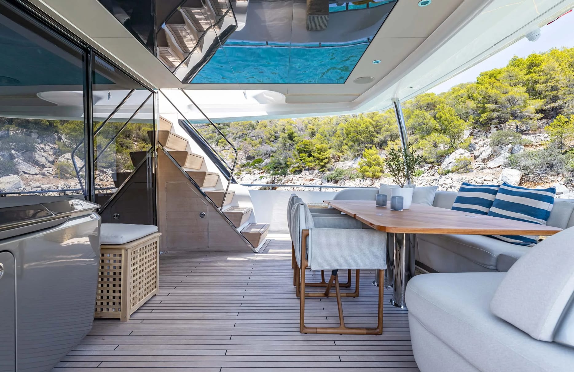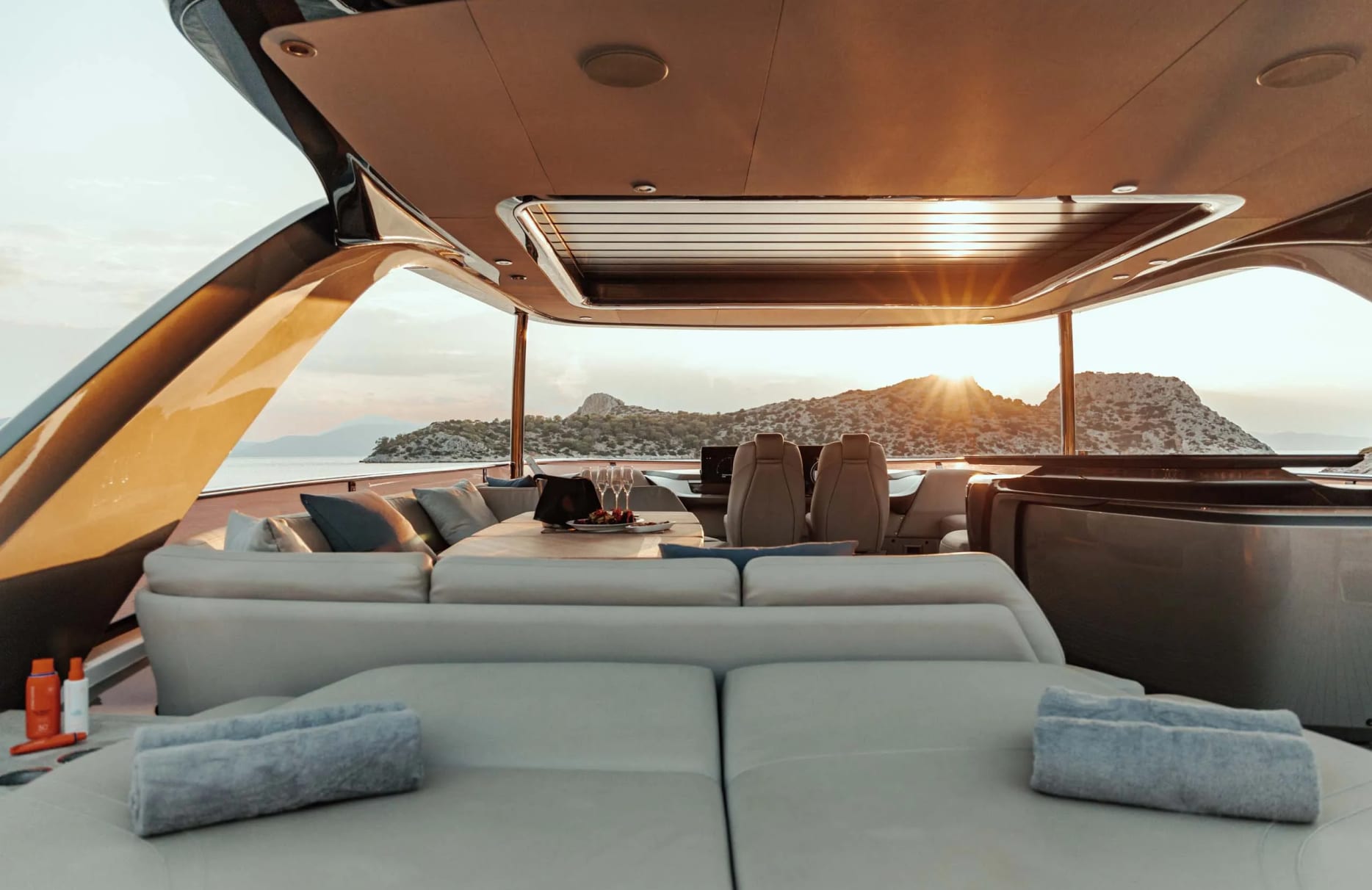 Onboard Vista, every moment is an invitation to relax and rejuvenate. The sun deck serves as a sanctuary under the sky, perfect for basking in the sun or relishing an al fresco meal. Air-conditioned interiors offer a cool respite from the midday sun, while the hydraulic swim platform provides easy access to the azure sea. As day turns to night, the underwater lights create an enchanting ambiance, setting the scene for evenings filled with storytelling and laughter.