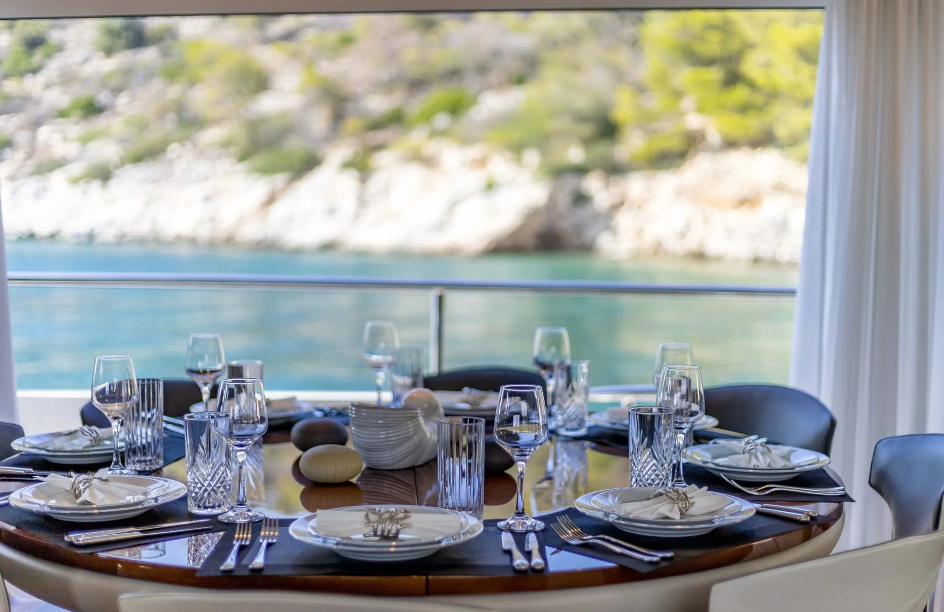 Accommodating up to eight discerning guests, Vista’s five exquisitely designed cabins provide a peaceful retreat after a day of exploration. Each morning, awaken to the gentle embrace of the sea’s rhythm, and let the sun’s first rays peek through your window. These cabins, thoughtfully crafted with comfort in mind, offer an inviting haven that feels both intimate and expansive, ensuring restful nights and inspired days.