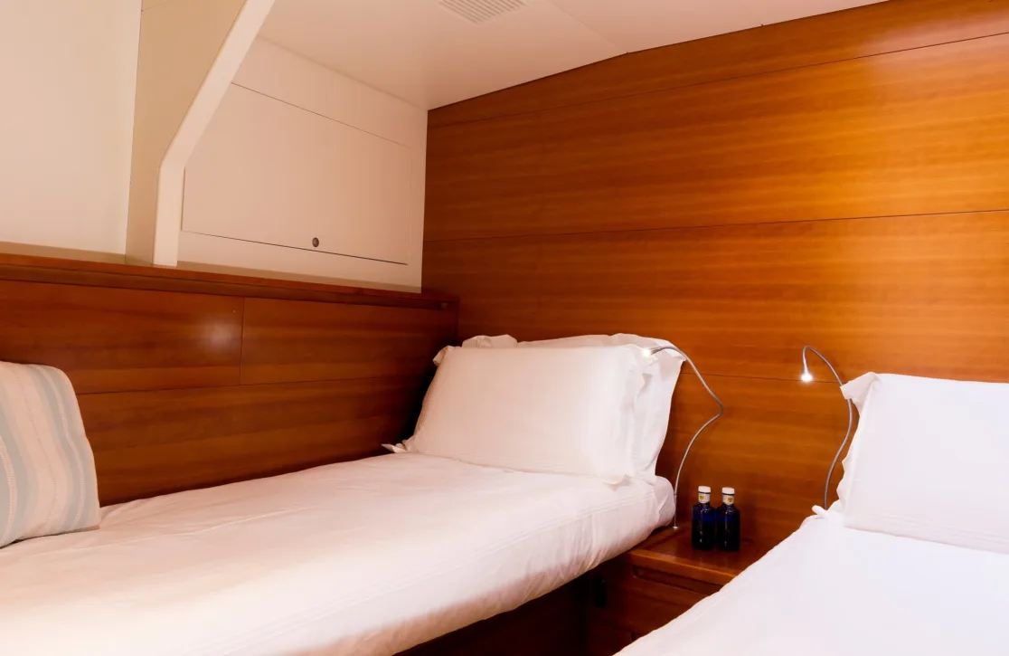 Wally Love welcomes up to eight guests in three beautifully appointed cabins, each offering a sanctuary of comfort and privacy. Imagine waking to the gentle sway of the sea as sunlight filters through your window, promising another day of adventure. The yacht’s interiors, crafted with meticulous attention to detail, provide a harmonious blend of sophistication and warmth, ensuring restful nights and leisurely mornings. With a dedicated crew of four, every need is anticipated, creating an atmosphere where relaxation comes effortlessly.