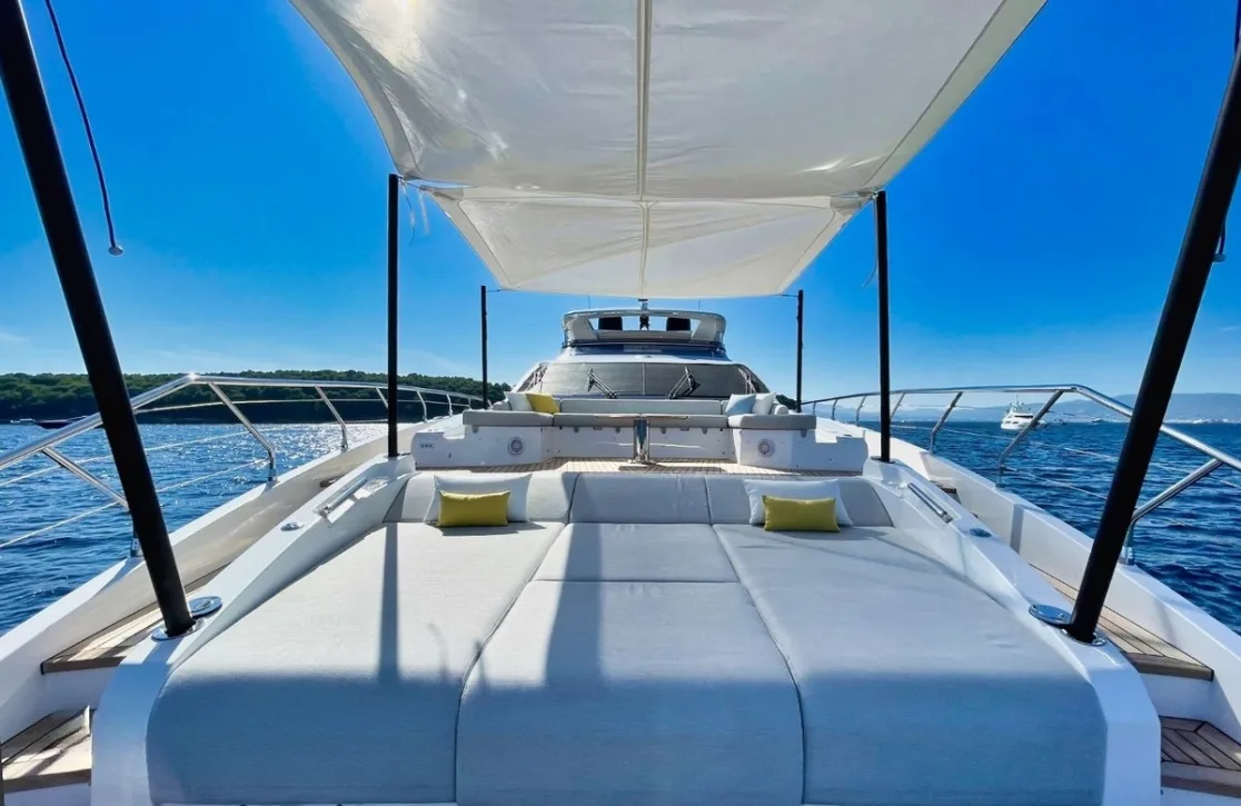 Imagine days spent aboard the exquisite motor yacht ‘Wave,’ where sophistication and elegance meet the open sea. This 27-meter vessel, a masterpiece crafted by Azimut and styled by Achille Salvagni, promises an unparalleled maritime journey. With the seamless blend of comfort and style, ‘Wave’ becomes your private oasis, offering the perfect balance of adventure and relaxation. Cruise at a graceful 22 knots, with the potential to reach up to 27, as you explore hidden coves and vibrant harbors. Whether you’re soaking up the sun on deck or discovering the wonders ashore, each moment aboard ‘Wave’ is designed to create extraordinary memories.