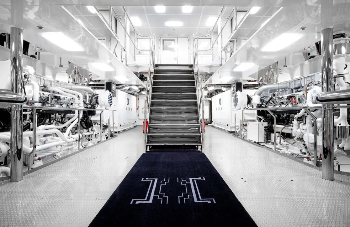 Aboard Whisper, the elegance of her spaces is matched only by the sophistication of her amenities. Guests find solace in the mosaic-tiled pool, complemented by an inset Jacuzzi that serves as a sanctuary for relaxation while offering panoramic views of the horizon. When the sun dips below the waves, the aft deck transforms into an al fresco dining haven, its ambiance enhanced by a fire pit and cascading waterfall. Within, the yacht’s grand salon, with its Art Deco-inspired design, invites gatherings both intimate and grand, while a dedicated spa and gym promise rejuvenation. Whether savoring moments in the beach club or enjoying a cinematic experience under the stars, Whisper redefines onboard living with unparalleled style.